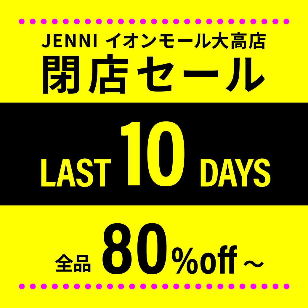 NEWS 2024.06.05 2024LATE SUMMER【NEW ARRIVAL】 全国のJENNI SHOP、JENNI Online Shop各店に 2024年晩夏の新作商品が続々入荷いたします。トレンドアイテムが盛りだくさん! おしゃれな最新アイテムをCHECKしてください♡ ショップリストはコチラ JENNI Online Shopで新作をチェック 過去のTOPICS 2025.10.31 イオンモール大高店 閉店セール開催中! 2025.10.31 4日間限定!OUTLETタイムセール開催 2025.10.23 オンラインショップ再稼働&閉店セール開始です! 2025.10.11 閉店まであと3日!週末限定割引スタート!